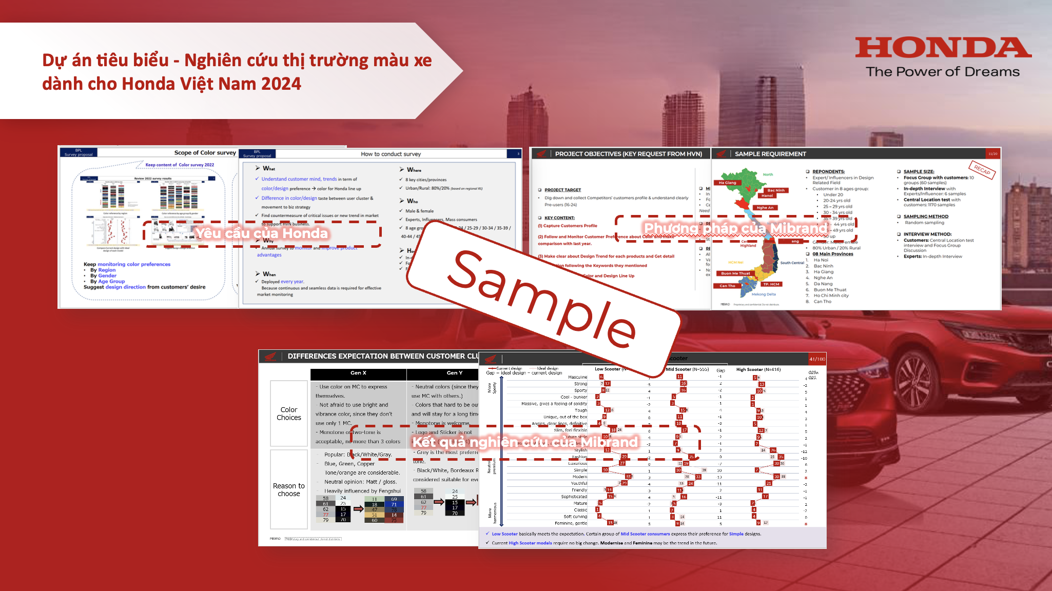 • Tổ chức phỏng vấn nhóm (Focus Group) và khảo sát khách hàng tập trung (Central Location Test) theo dự án để thu thập thông tin đánh giá và phản hồi về thương hiệu và sản phẩm Honda, trong đó: