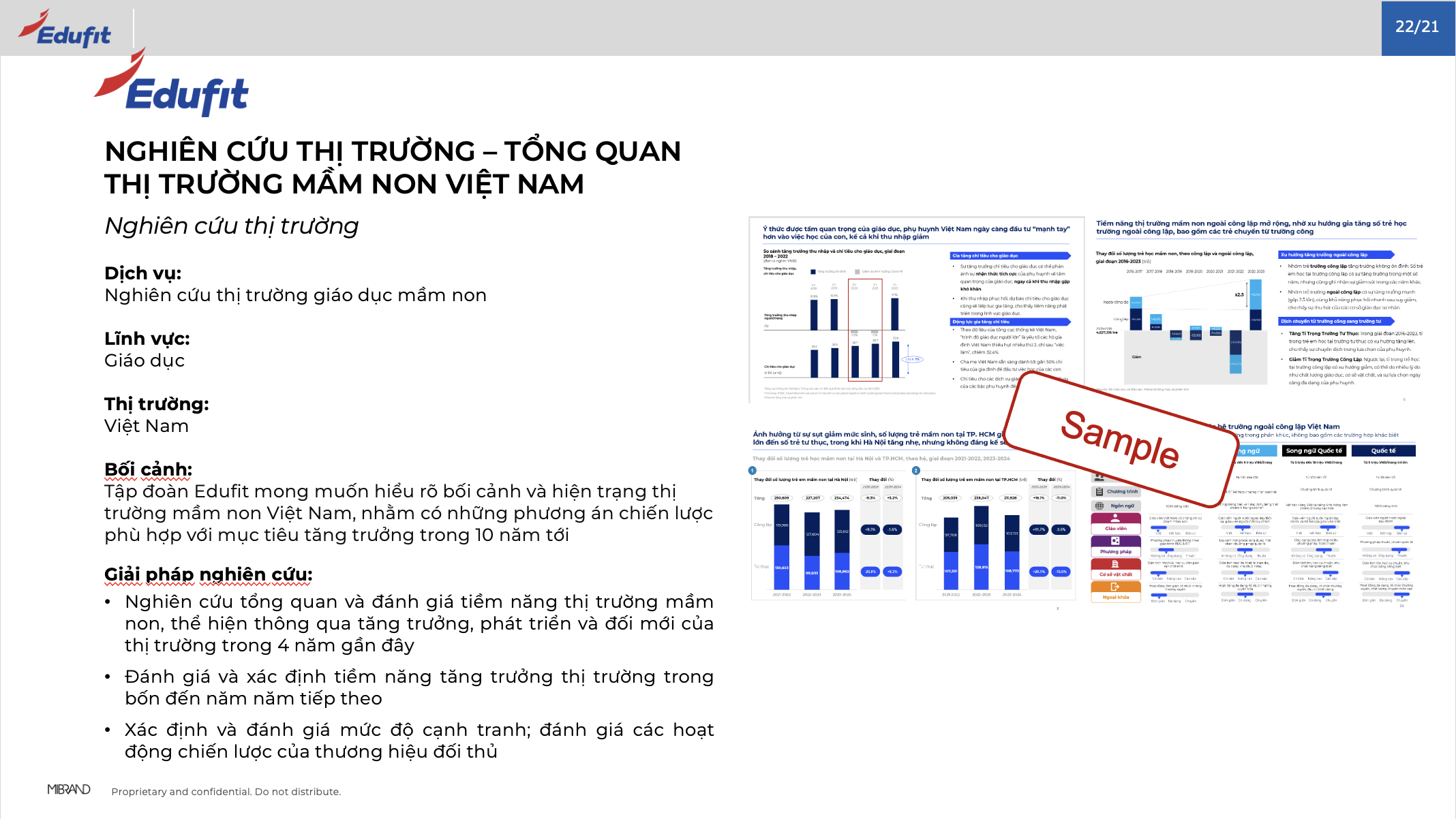 • Tập đoàn Edufit mong muốn hiểu rõ bối cảnh và hiện trạng thị trường mầm non Việt Nam, nhằm có những phương án chiến lược phù hợp với mục tiêu tăng trưởng trong 10 năm tới